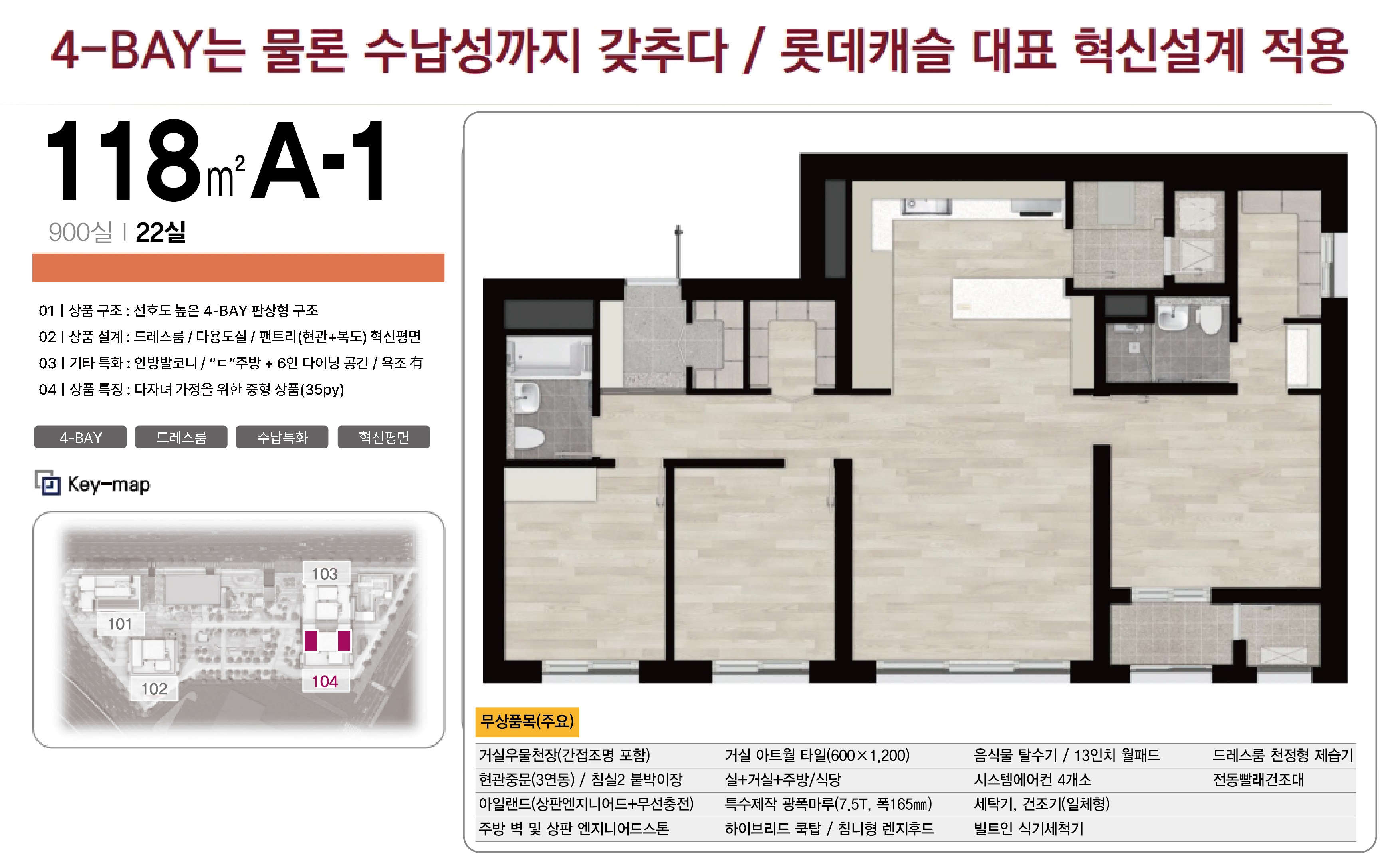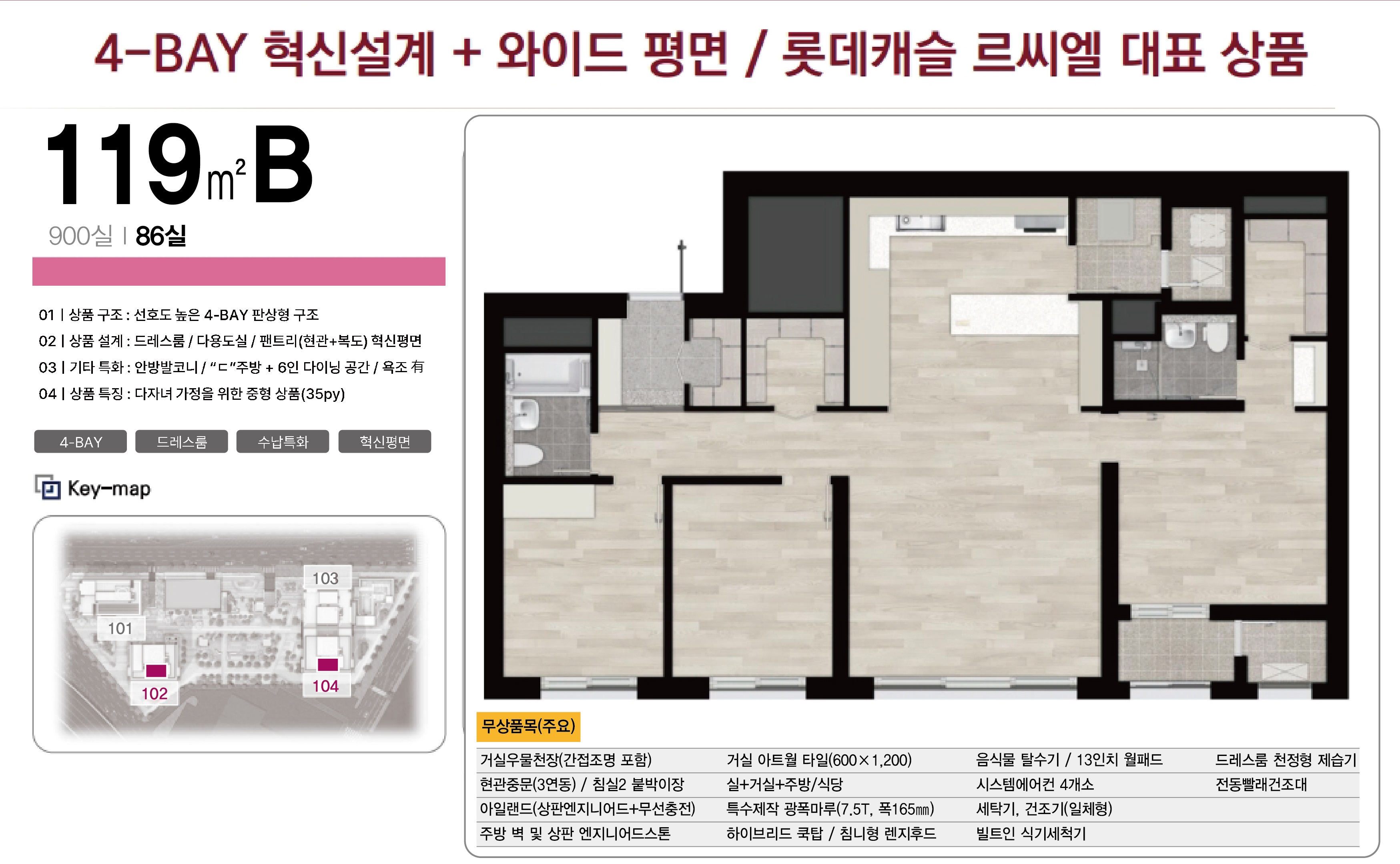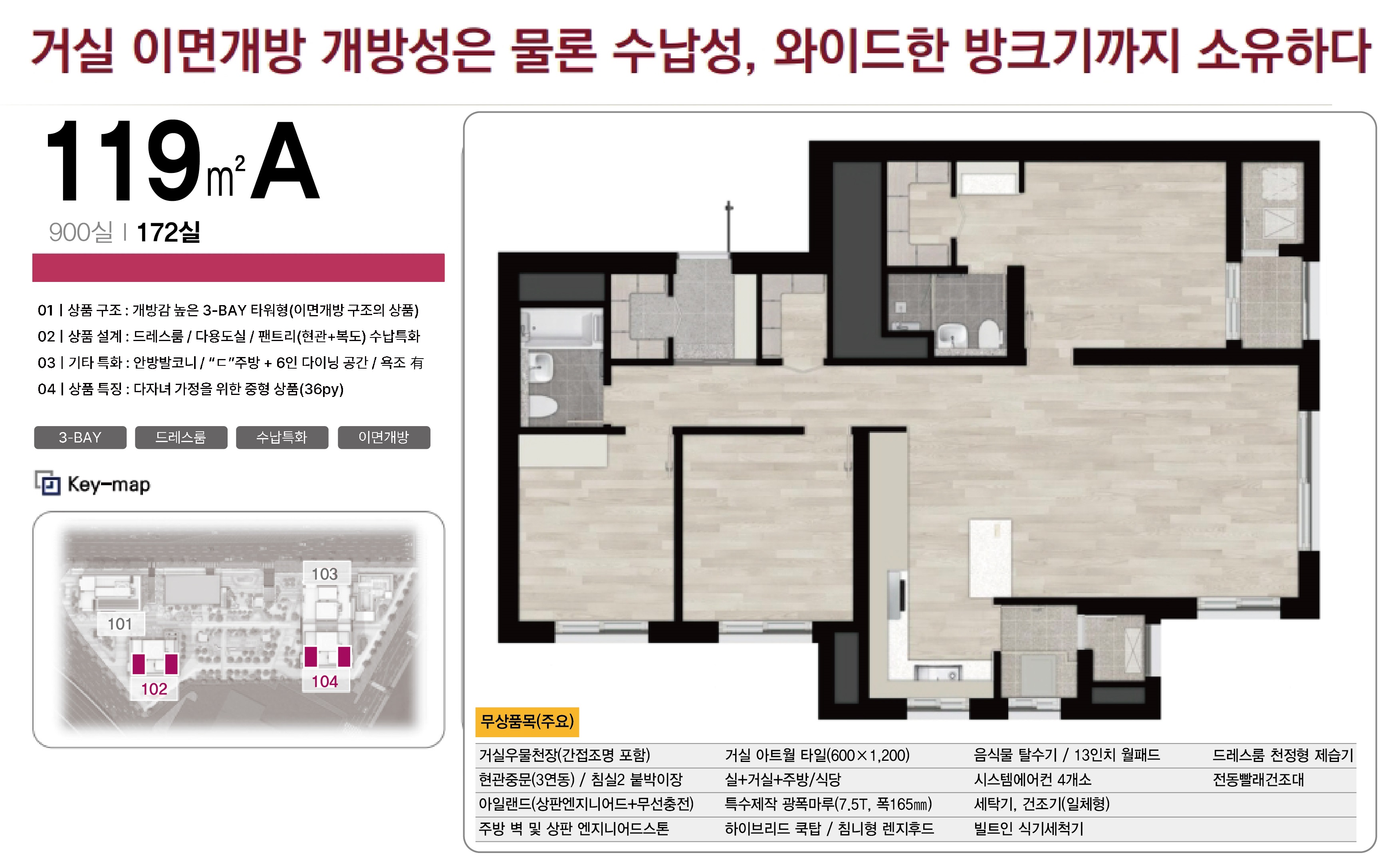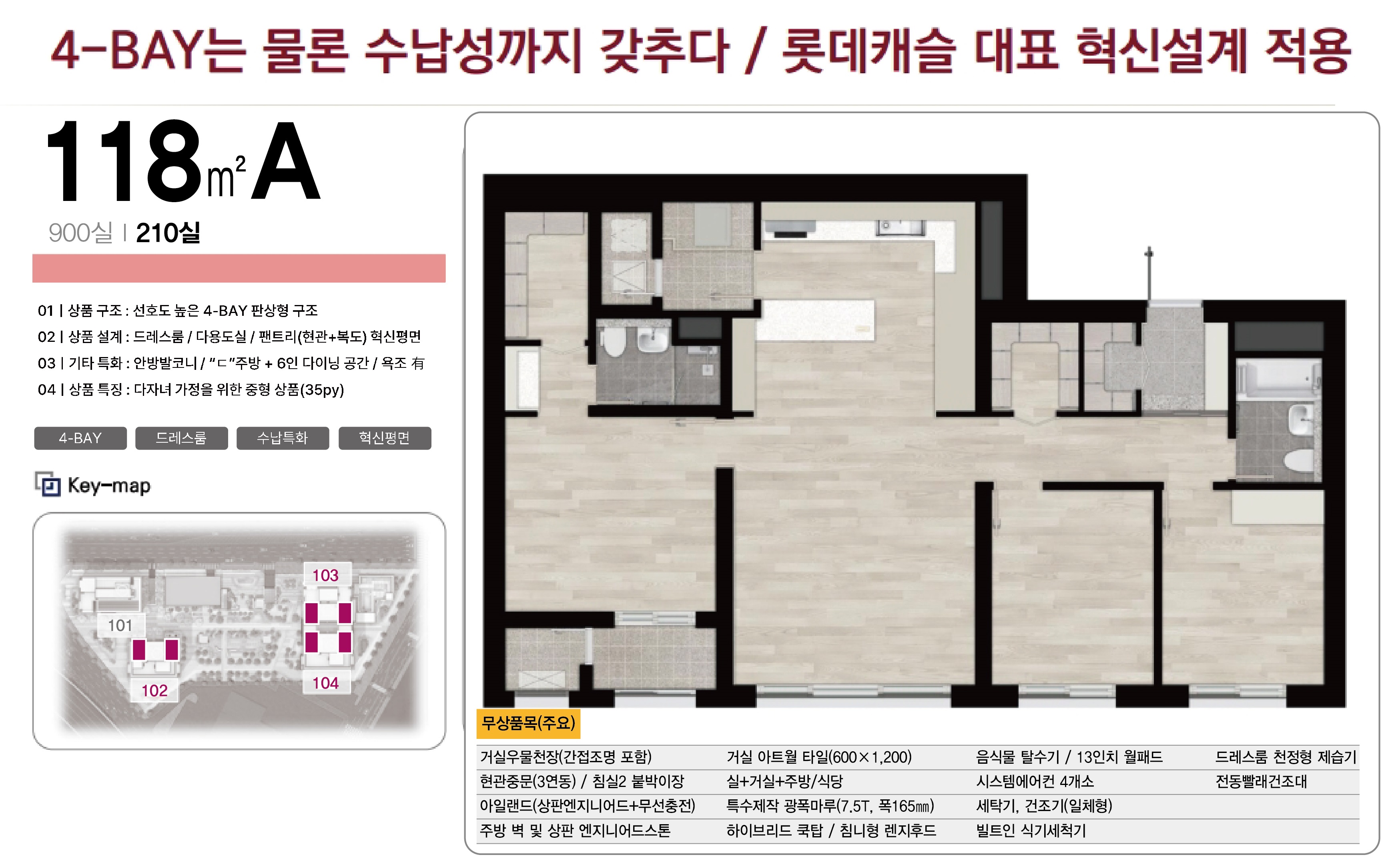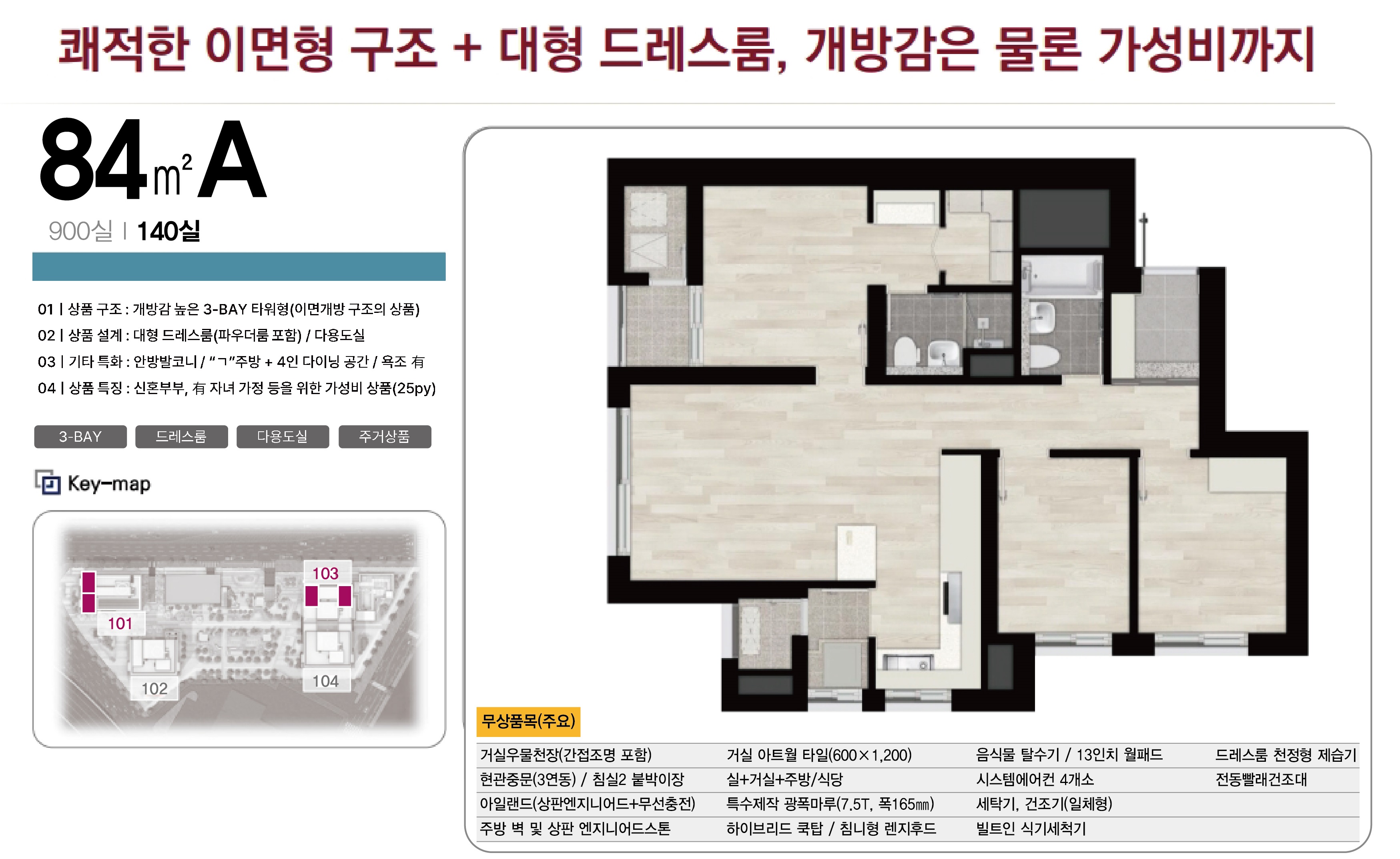 요즘 트렌드를 반영한 4bay 판상형 구조로 설계되어 만족도를 높혔으며,